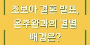 최근 조보아 배우가 비연예인 남자친구와 결혼식을 올린다는 기쁜 소식을 전했습니다. 소속사 엑스와이지 스튜디오는 공식 입장을 통해 “조보아 배우가 소중한 인연을 만나 오랜 기간 서로를 향한 깊은 신뢰와 애정을 쌓아오다 다가오는 …