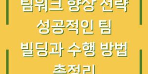 팀워크는 조직의 성공에 필수적인 요소입니다. 효과적인 팀워크는 생산성 향상, 문제 해결, 그리고 혁신적인 아이디어 도출에 큰 기여를 합니다. 하지만 팀워크를 향상시키기 위해서는 어떤 전략이 필요할까요? 이번 글에서는 팀워크 향상을 위한 …