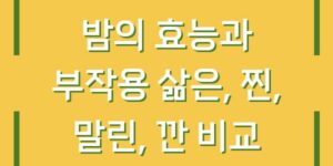 밤은 한국의 전통 간식으로, 다양한 조리 방법으로 즐길 수 있습니다. 삶은 밤, 찐 밤, 말린 밤, 그리고 깐 밤 각각은 고유의 맛과 영양 성분을 가지고 있어 소비자들에게 다양한 선택지를 제공합니다. …