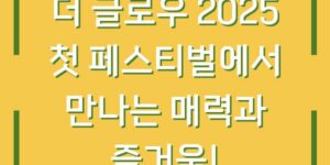 더 글로우 2025가 드디어 첫 페스티벌을 맞이합니다. 이번 페스티벌은 많은 음악 애호가들에게 기대를 모으고 있으며, 다양한 아티스트들이 출연할 예정입니다. 실내에서 진행되는 페스티벌이기 때문에 날씨에 구애받지 않고 편안하게 즐길 수 있는 …