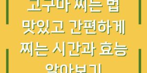 고구마는 한국인들이 사랑하는 대표적인 건강 간식입니다. 찌기만 하면 간편하게 먹을 수 있고, 영양가도 풍부하여 많은 이들에게 인기가 높습니다. 이번 글에서는 고구마를 맛있게 찌는 방법과 찌는 시간, 고구마의 효능, 그리고 부작용에 …