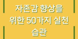 자존감은 개인의 정신적, 정서적 건강에 큰 영향을 미치는 요소입니다. 높은 자존감은 긍정적인 삶의 태도를 가져오고, 이는 결국 삶의 질 향상으로 이어집니다. 본 글에서는 자존감을 향상시키기 위한 50가지 생활 습관과 태도에 …