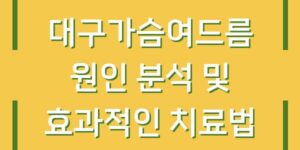 여드름은 많은 사람들이 겪는 피부 문제 중 하나로, 특히 대구 지역에서는 가슴 여드름으로 고민하는 분들이 많습니다. 가슴 여드름은 피부가 민감한 부위에 발생하기 때문에 불편함을 초래하며, 미적인 측면에서도 많은 우려를 불러일으킬 …