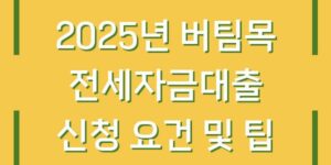 전세자금대출은 임차인에게 주거 안정을 제공하기 위해 마련된 금융 상품입니다. 특히, 2025년에는 신생아 출산 가구를 대상으로 한 특별한 전세자금대출이 도입되어 많은 이들에게 주거 안정의 기회를 제공할 예정입니다. 이번 글에서는 2025년 버팀목 …