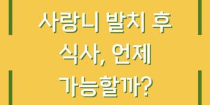 사랑니 발치는 많은 이들에게 익숙한 경험입니다. 하지만 발치 후 어떤 음식을 언제부터 먹을 수 있는지는 많은 사람들이 궁금해하는 부분입니다. 이 글에서는 사랑니 발치 후 식사에 대한 정확한 정보를 제공하고, 각 …