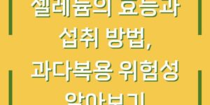 셀레늄은 우리 몸에 필수적인 미량 미네랄로, 다양한 생리적 기능을 수행하는 데 중요한 역할을 합니다. 현대인의 식생활에서 셀레늄의 중요성이 점점 더 부각되고 있는 가운데, 그 효능과 안전한 섭취 방법에 대해 자세히 …