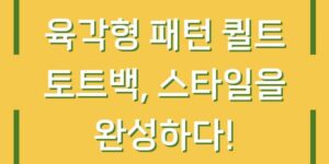 독특한 디자인의 매력 육각형 패턴 퀼트 토트백은 그 자체로도 매우 독특한 매력을 지닌 아이템입니다. 이 가방의 디자인은 전통적인 퀼트 기법을 현대적인 미감으로 재해석하여, 일상에서 사용하기에 적합하면서도 패셔너블한 요소를 결합하였습니다. 육각형 …