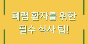 폐렴은 폐에 염증이 생기는 질병으로, 주로 감염에 의해 발생합니다. 폐렴 환자는 체력이 저하되고 식욕이 감소하는 경우가 많아 적절한 영양 섭취가 매우 중요합니다. 여기서는 폐렴 환자가 유의해야 할 식사 팁과 함께, …