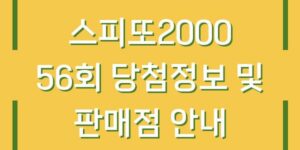 스피또2000은 복권 중에서도 많은 사랑을 받고 있는 인기 있는 복권입니다. 이번 포스팅에서는 스피또2000의 56회 차 당첨정보와 판매점에 대한 자세한 내용을 다룰 예정입니다. 스피또2000의 매력적인 요소와 당첨 확률, 그리고 당첨 시 …